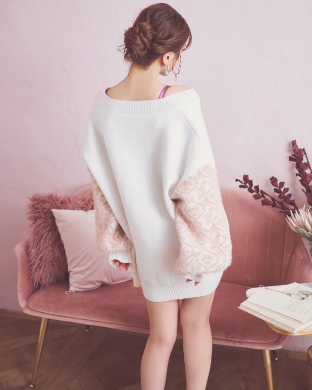 ずっと触っていたくなるふわふわなジャガードが特徴のカーディガンワンピース。